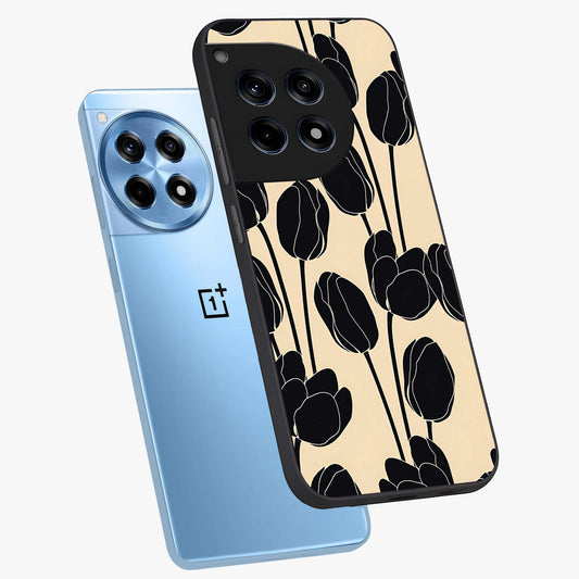 Black Designer Tulip Glass Case for OnePlus 12R |1+12R