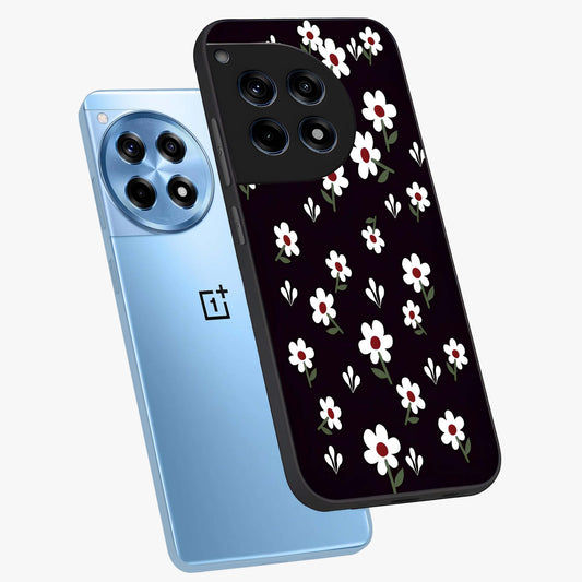 Black Prints Daisy Flower Pattern Glass Case for OnePlus 12R |1+12R