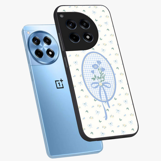 Blue Ribbon Bloom Glass Case for OnePlus 12R |1+12R