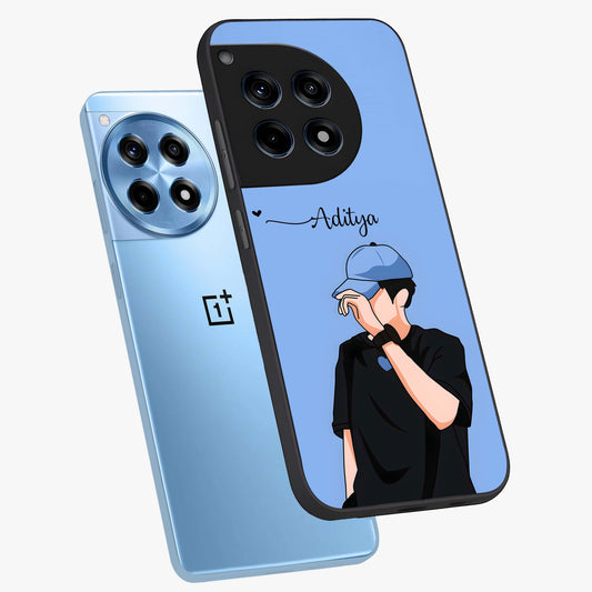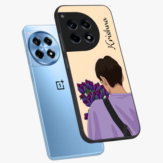 Boy Holding Flowers Custom Name Glass Case for OnePlus 12R |1+12R