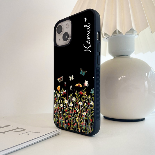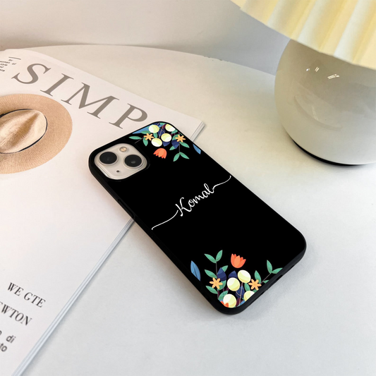 Black Elegance Floral Custom Name Glass Case