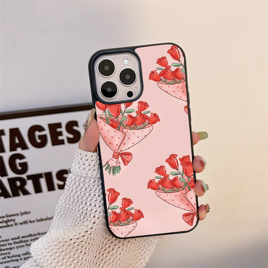 Elegant Rose Bouquet Flowers Pattern Glass Case