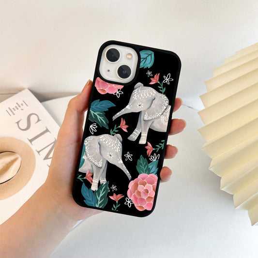 Elephant Floral Art Glass Case
