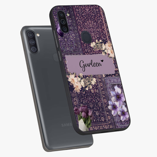 Antique Floral Whisper Custom Name Glass Case For Samsung Galaxy A11