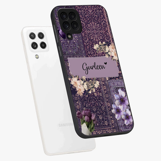 Antique Floral Whisper Custom Name Glass Case For Samsung Galaxy A12