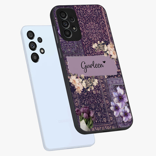 Antique Floral Whisper Custom Name Glass Case For Samsung Galaxy A13 5G