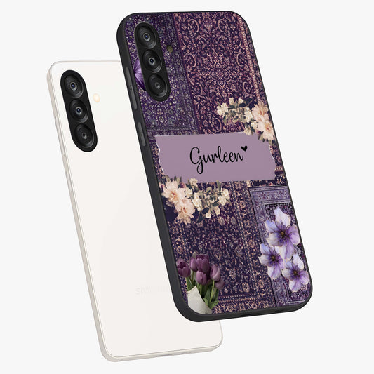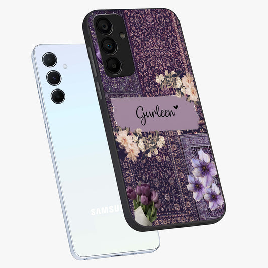 Antique Floral Whisper Custom Name Glass Case For Samsung Galaxy A34