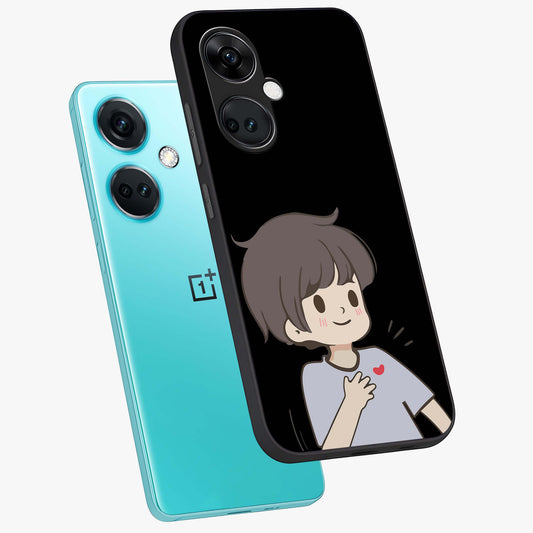 Cute Boy Heart Reaction Glass Case for OnePlus Nord Ce 3 |1+Nord Ce 3