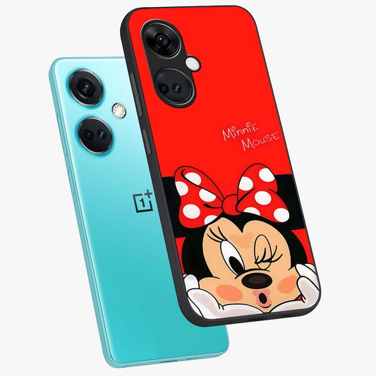 Cute Minnie Love Custom Name Glass Case for OnePlus Nord Ce 3 Lite |1+Nord Ce 3 Lite