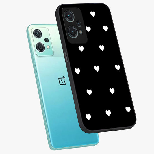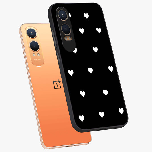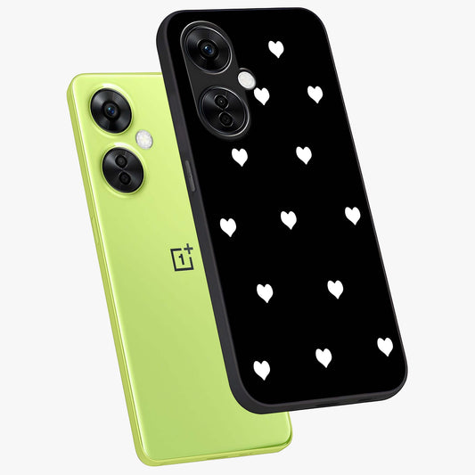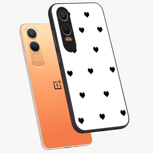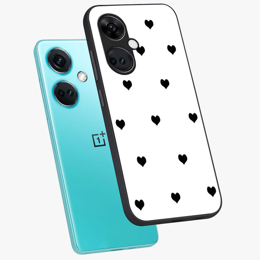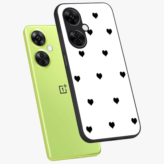 Cute and Simple Black Hearts Glass Case for OnePlus Nord Ce 3 |1+Nord Ce 3
