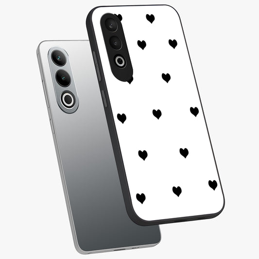 Cute and Simple Black Hearts Glass Case for OnePlus Nord Ce 4 Lite |1+Nord Ce 4 Lite