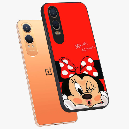 Cute Minnie Love Custom Name Glass Case for OnePlus Nord Ce 4 Lite |1+Nord Ce 4 Lite