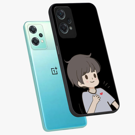 Cute Boy Heart Reaction Glass Case for OnePlus Nord Ce 2 |1+Nord Ce 2