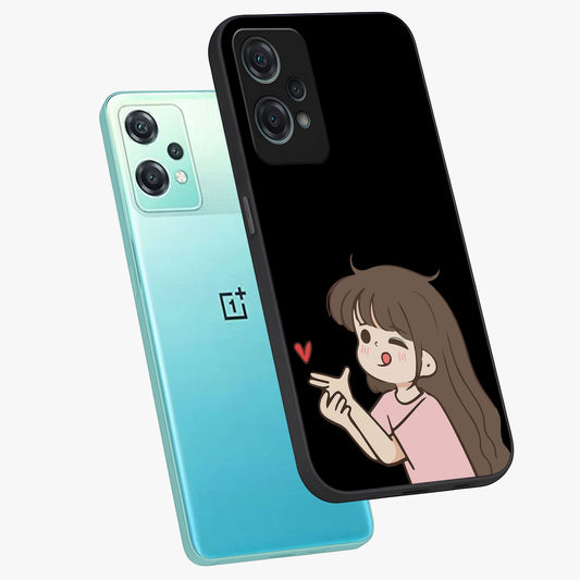 Cute Girl Firing Heart Glass Case for OnePlus Nord Ce 3 |1+Nord Ce 3