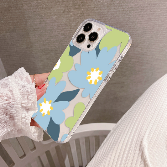 Blue and Green Flower Pattern Clear Silicon Case Cover