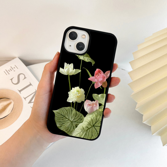 Lotus Flowers & Leaves Glass Case