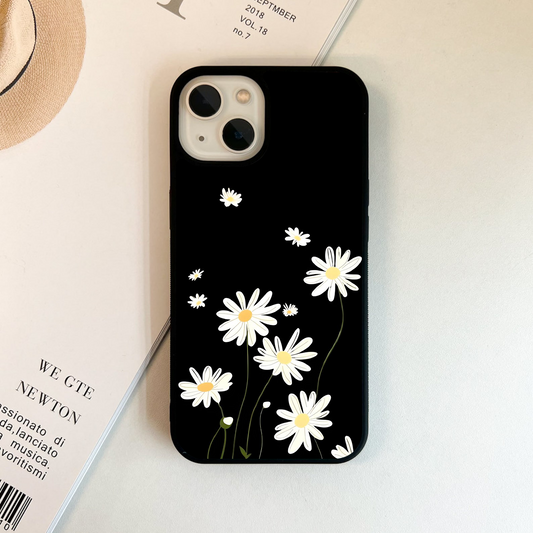 Black Prints Daisy Flower Pattern Glass Case