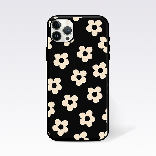 Daisy Flower Pattern Black Glass Case