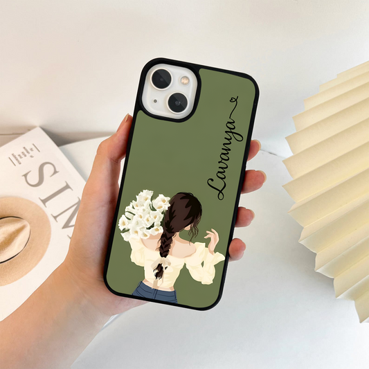Beautiful Girl with Flowers Custom Name Clear Silicon Cover