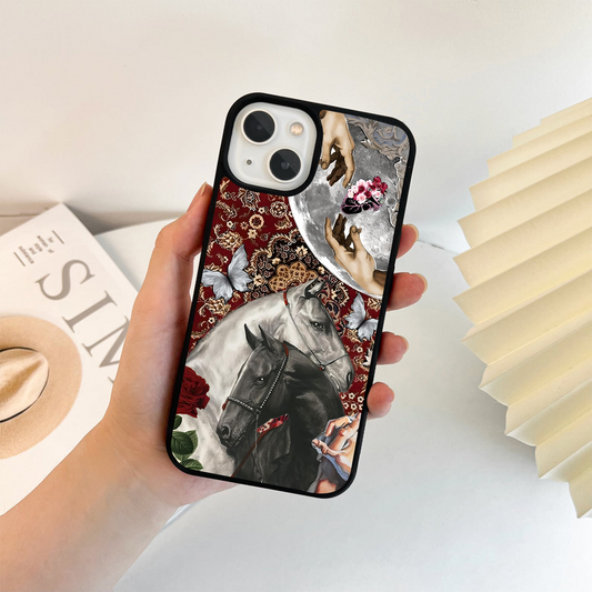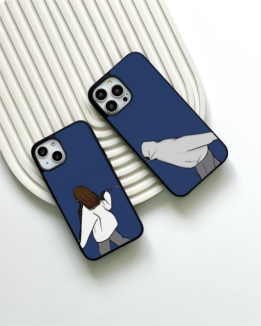 Line Art Couple Glass Case ( 2 FREE Keychains )