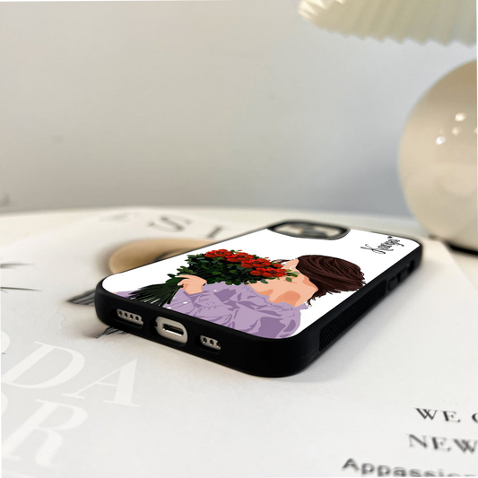 Graceful Floral Moment Girl With Custom Name Glass Case
