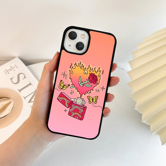 Burning Heart Flame Glass Case