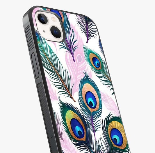 Royal Peacock Feathers Glass Case For iPhone 14 Plus