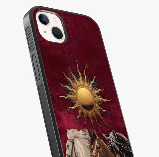 Regal Stallion Tapestry Glass Case For iPhone 15 Plus