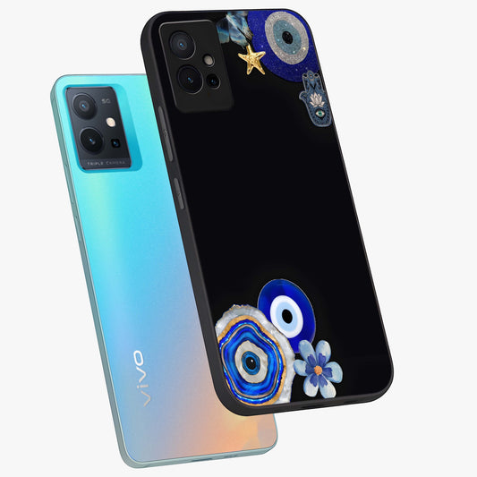 Aesthetic Blue Evil Eye Glass Case For iQOO Z6 5G