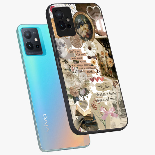 Aesthetic Brown Vintage Collage Glass Case For iQOO Z6 5G