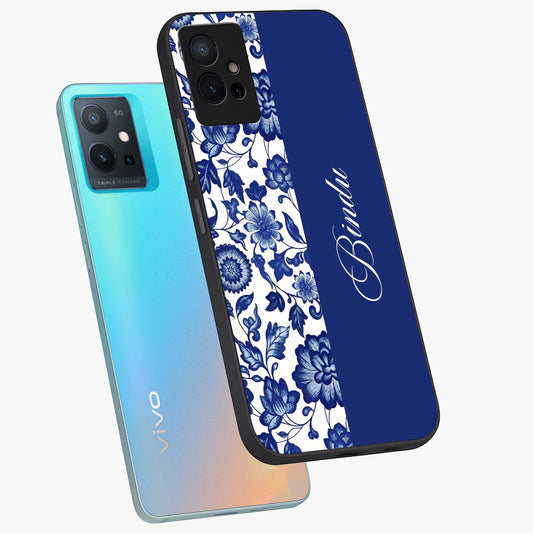 Blue Vintage Floral Pattern Glass Case For iQOO Z6 5G