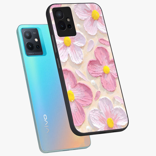Blush Bloom Texture Glass Case For iQOO Z6 5G