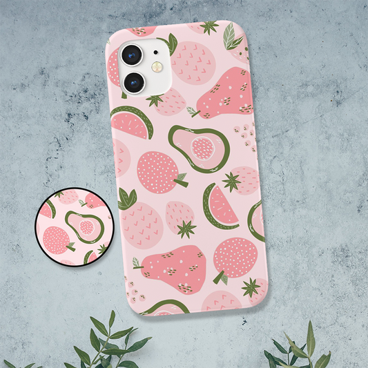 Pink Avocado & Fruits Slim Case Cover With Same Design Holder