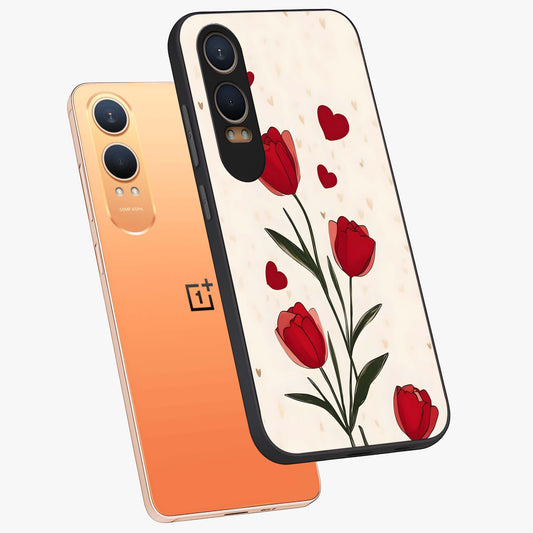 Romantic Tulip Hearts Glass Case for OnePlus Nord Ce 4 Lite |1+Nord Ce 4 Lite