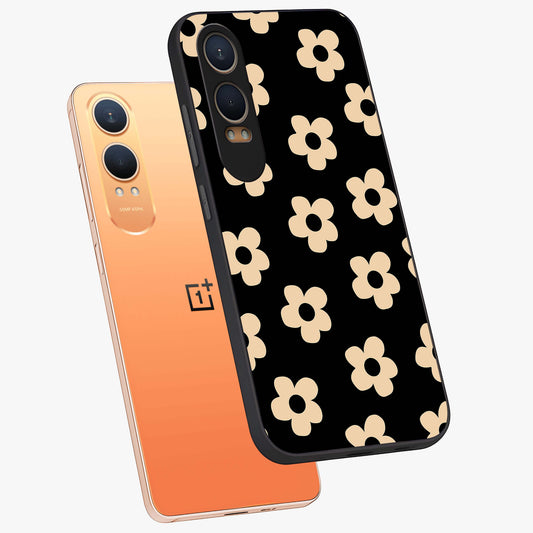 Good Vibes Daisy Black Pattern Glass Case for OnePlus Nord Ce 4 Lite |1+Nord Ce 4 Lite