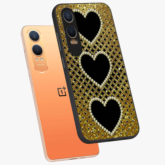 Golden Heart Glow Glass Case for OnePlus Nord Ce 4 Lite |1+Nord Ce 4 Lite