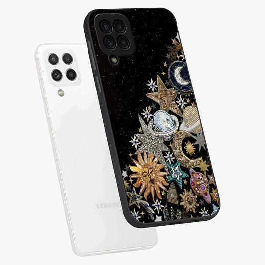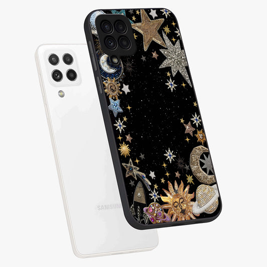 Golden Celestial Charm Glass Case For Samsung Galaxy A12
