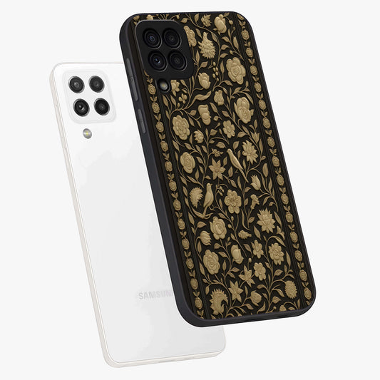 Golden Floral Majesty Glass Case For Samsung Galaxy A12