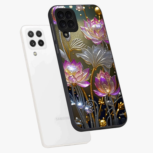 Golden Lotus Glow Glass Case For Samsung Galaxy A12