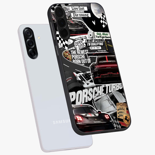 Porsche Racing Collage Glass Case For Samsung Galaxy A36