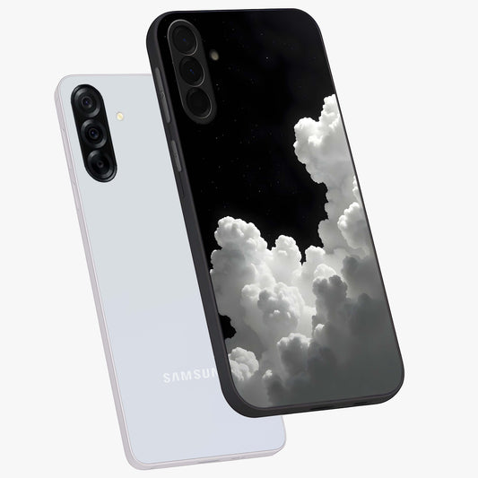 Black Background With White Cloud Glass Case For Samsung Galaxy A36