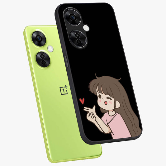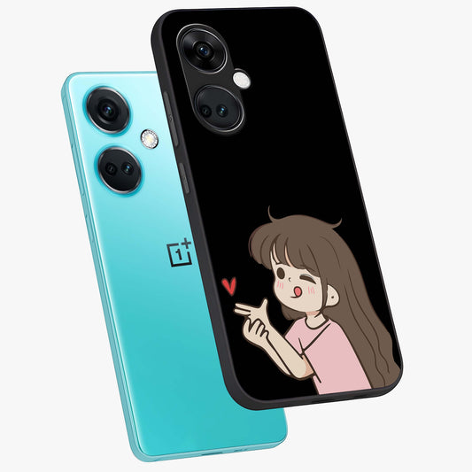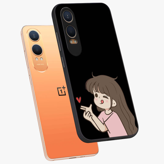 Cute Girl Firing Heart Glass Case for OnePlus Nord Ce 4 |1+Nord Ce 4