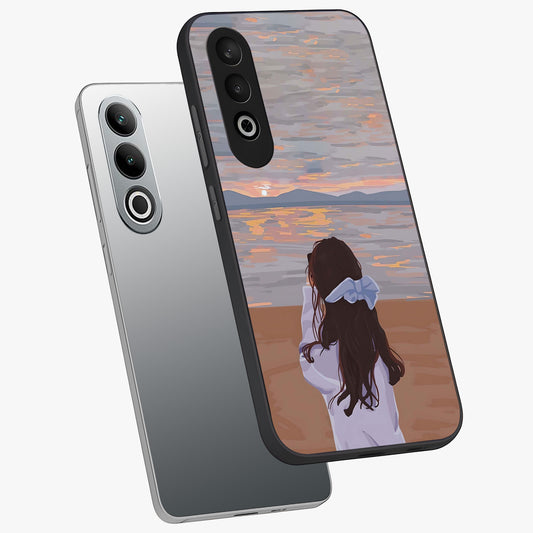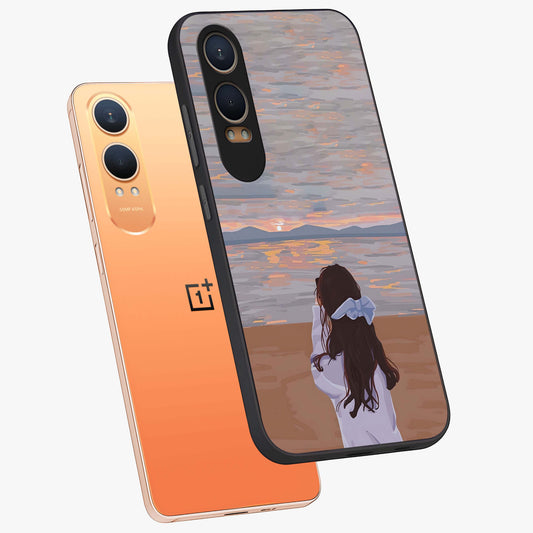 Girl Facing Sunset Beach Custom Name Glass Case for OnePlus Nord Ce 4 |1+Nord Ce 4