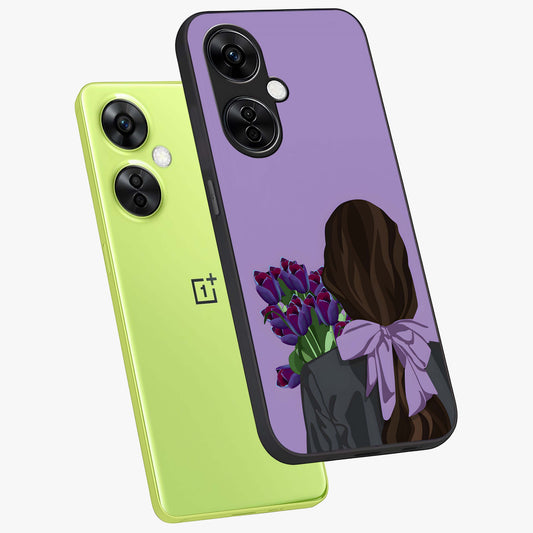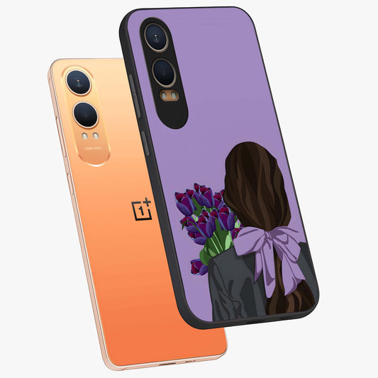 Girl Holding Flowers Custom Name Glass Case for OnePlus Nord Ce 4 |1+Nord Ce 4