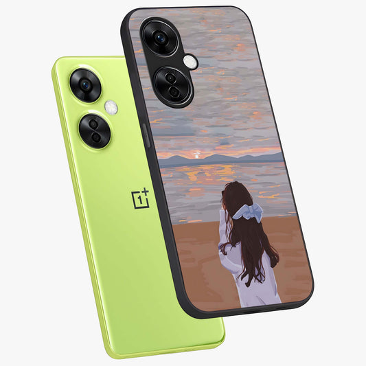 Girl Facing Sunset Beach Custom Name Glass Case for OnePlus Nord Ce 3 |1+Nord Ce 3