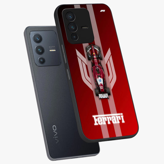 Red Ferrari F1 Vertical Glass Case For Vivo V23 Pro