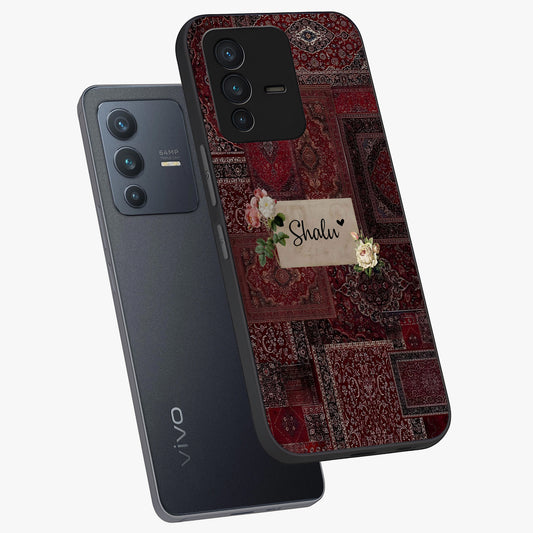 Velvet Wine Pattern Custom Name Glass Case For Vivo V23 Pro
