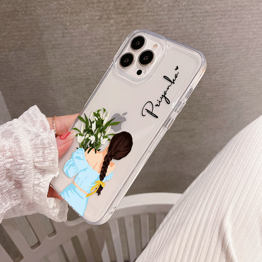 Girl With Flower Custom Name Clear Silicon Soft Cover