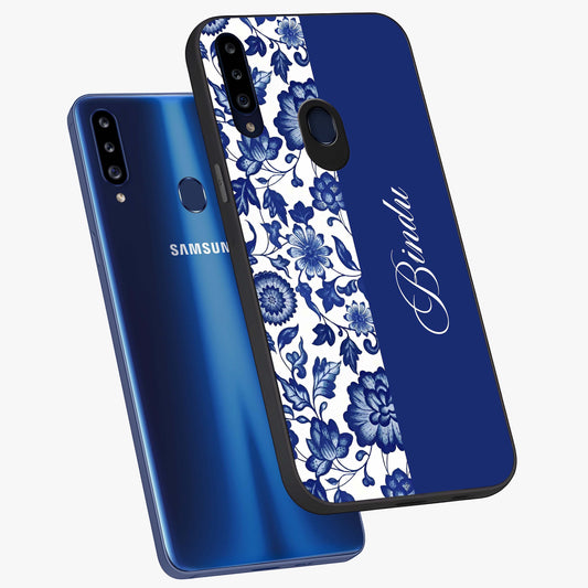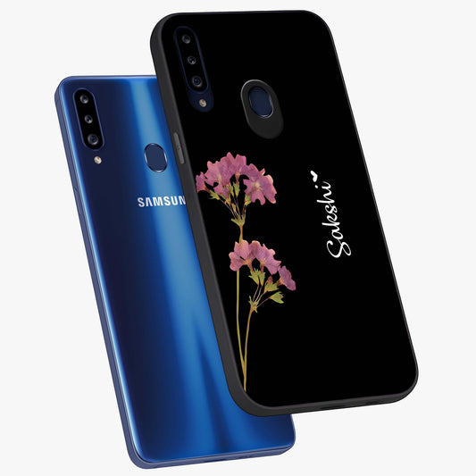 Floral Design With a Custom Personalized Name Glass Case For Samsung Galaxy A20S