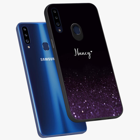 Glittery Purple Bokeh Custom Name Glass Case For Samsung Galaxy A20S